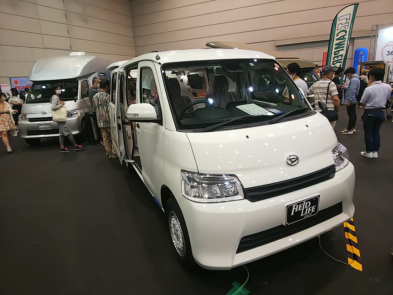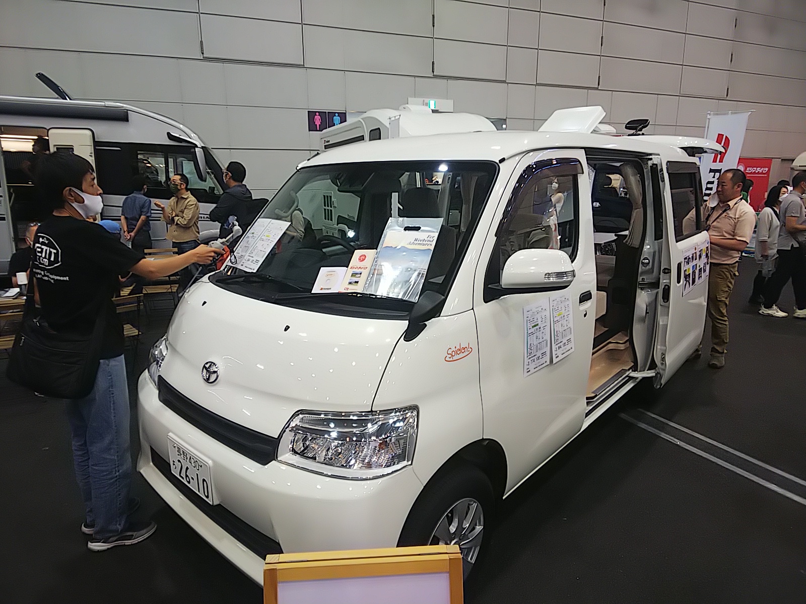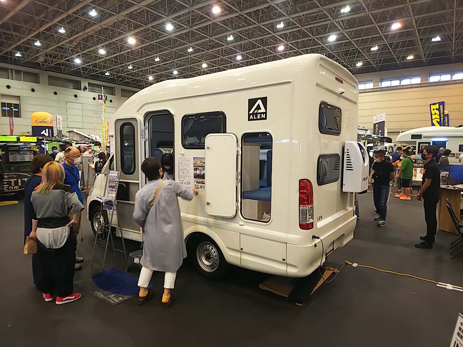 当日は朝8時に自宅を出発し、会場に到着したのは11時頃。まずは展示されていキャンピングカーを観るために会場をざっと巡回。TOM23、Alen H、Robby、ジュピーレンなど、ライトキャブコンやライトバンを中心に拝見しました。