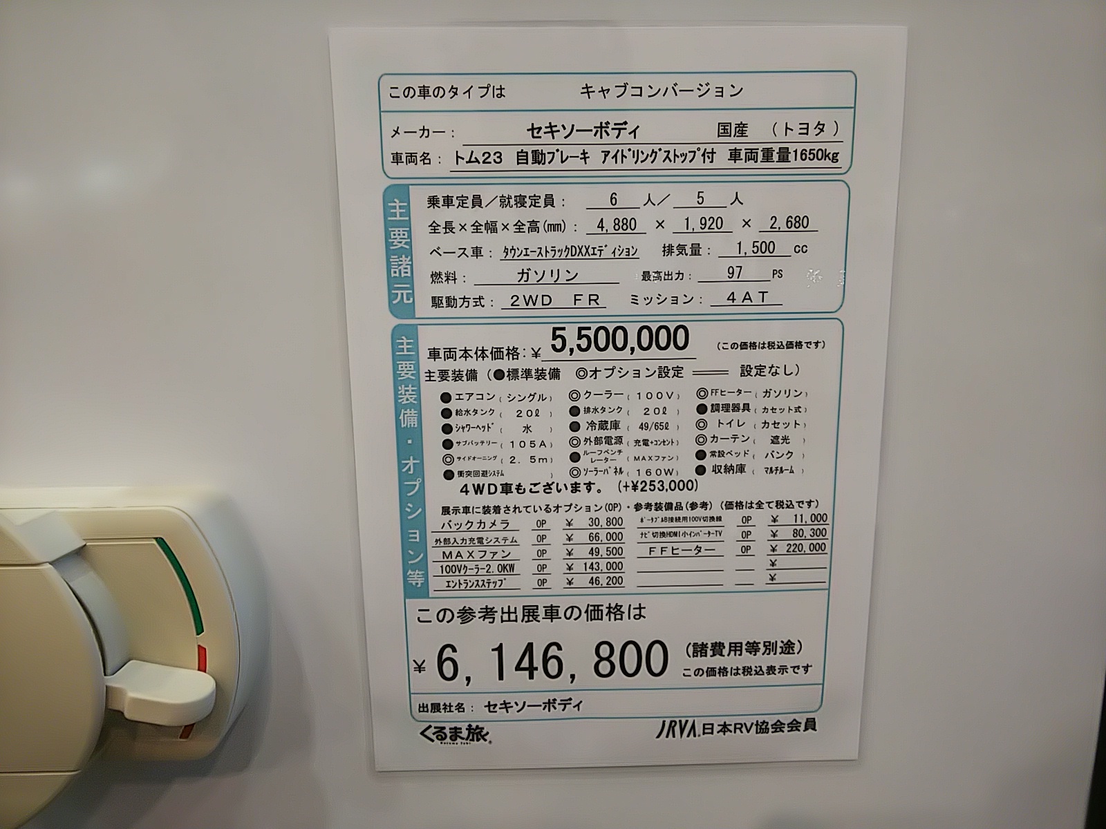 - 車両本体価格:5,500,000円(税込み)