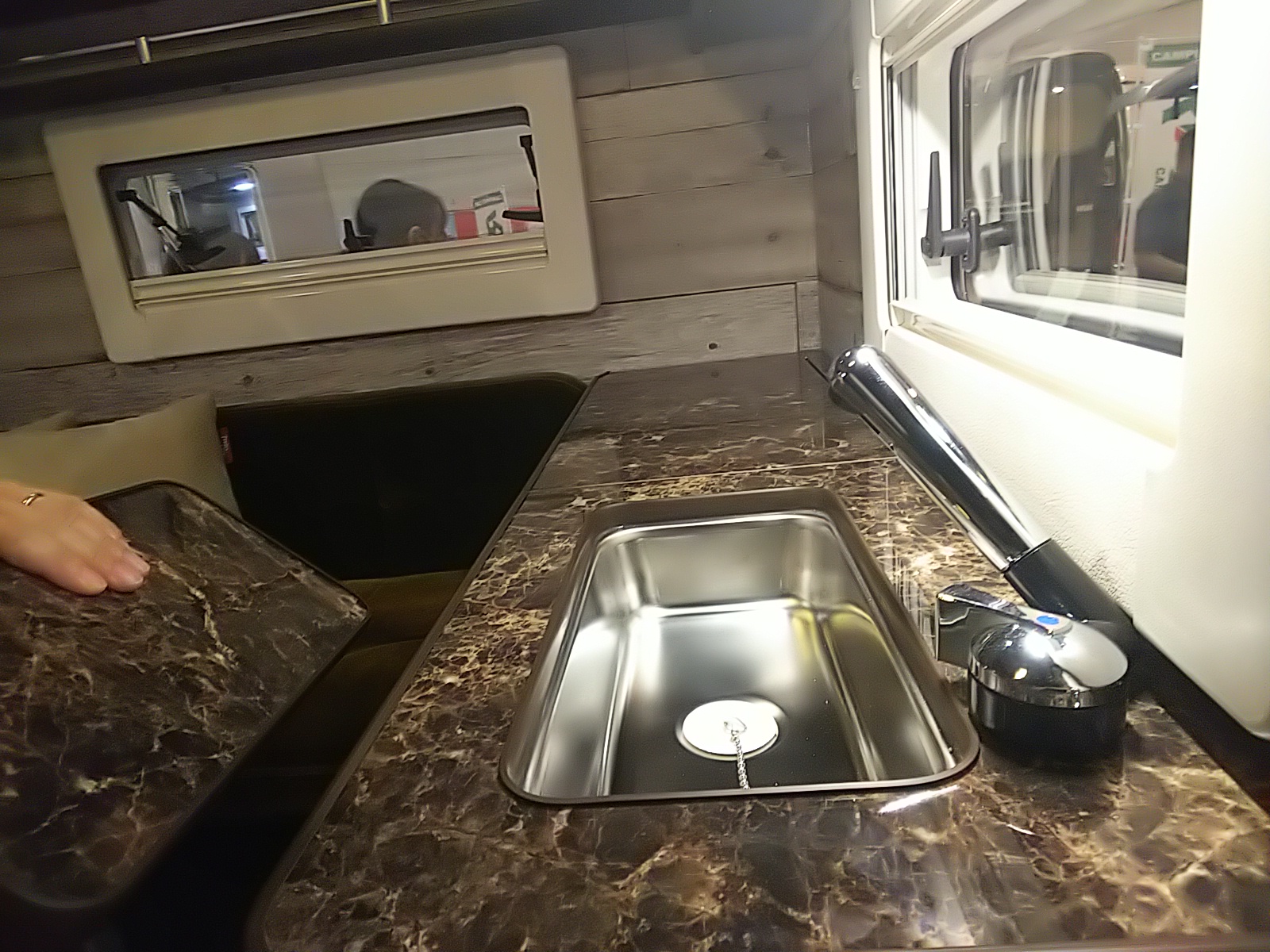 次に業界最大手・NUTS RVさんの最新型「BORDER BANKS(ボーダバンクス)」を拝見。カッコ良さ、大きさ、装備、そのお値段に目を丸くしました。個人的に大きさや価格を気にせずに選ぶのであれば、RV TRUSTさんの「Bolero V-Max」が一番のお気に入りでした。